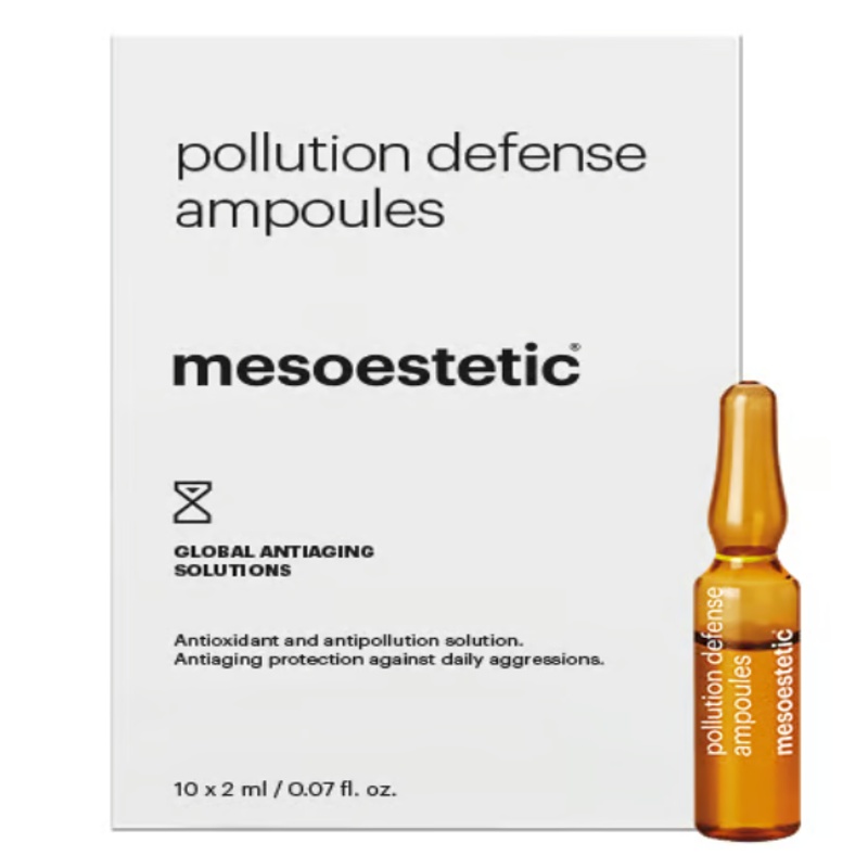 Pollution Defense Ampoules de Mesoestetic es un tratamiento concentrado en ampollas diseñado para combatir los efectos del entorno urbano sobre la piel. Su fórmula antioxidante y antipolución crea una barrera protectora que neutraliza radicales libres, hidrata intensamente y previene el envejecimiento prematuro.